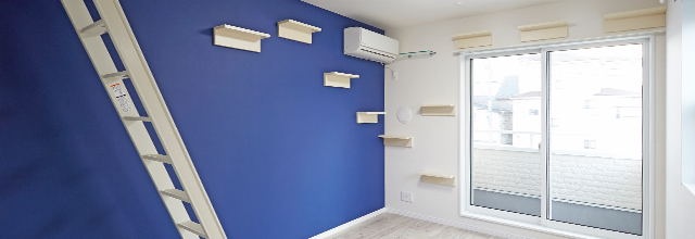 「ネコ共生アパート」には、ネコ飼養のための設備やさまざまな工夫が施されています。また、キズがつきにくい壁紙や床材を採用しているため、入居者の入替時の原状回復費用を低減することも可能です。