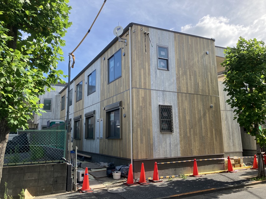 サイディング工事が完了し、足場が外れて