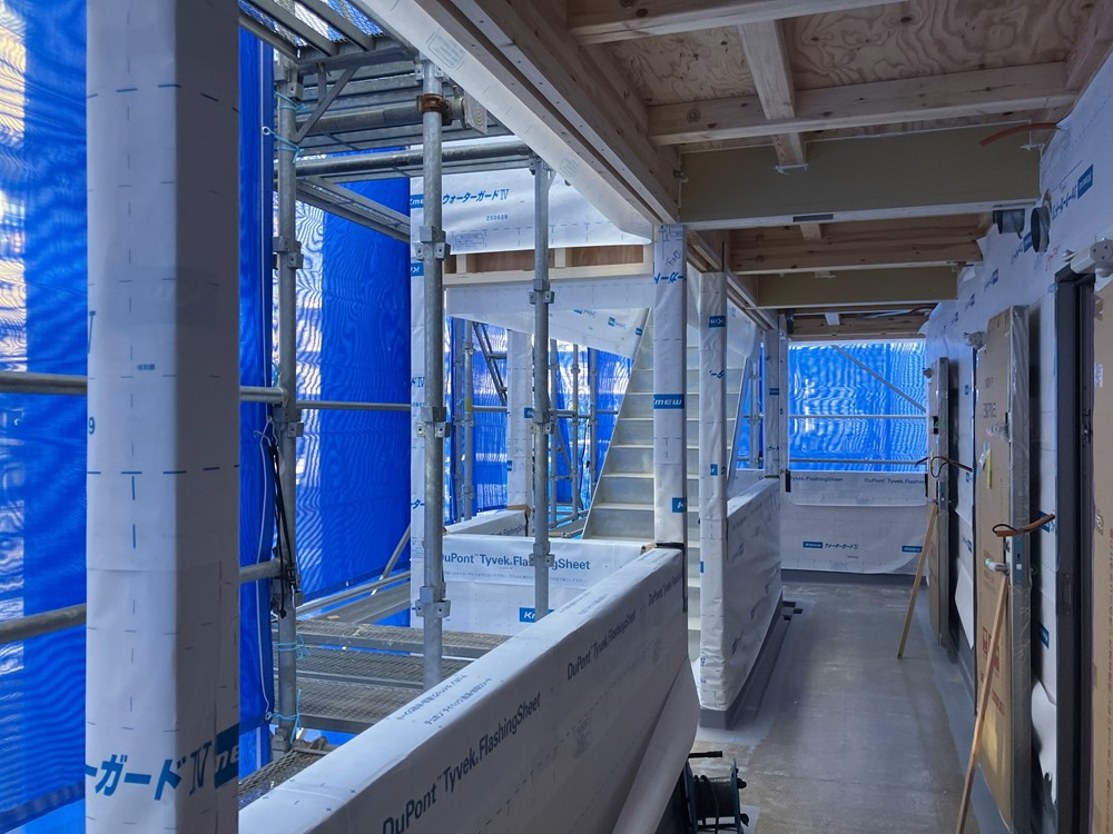 これからサイディングが取り付けられ、建物の印象もぐっと変わっていきます😊