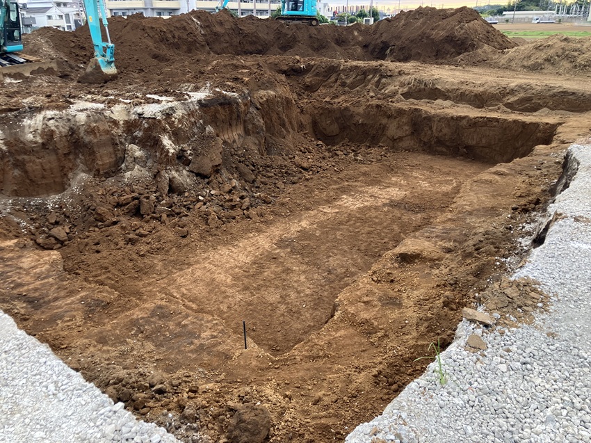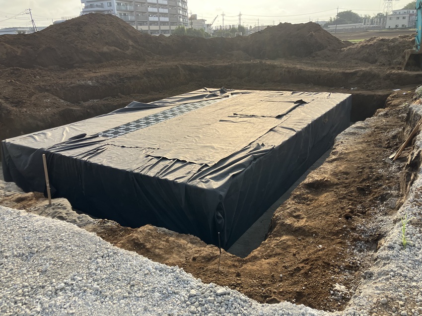 地中にW11.5m×D8m×H3mという大きな雨水貯留槽を設置しました。
