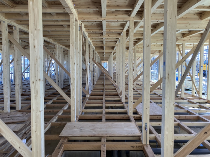 1階部分の躯体が組み上がり、この段階でも建物の規模感が伝わってきますね。