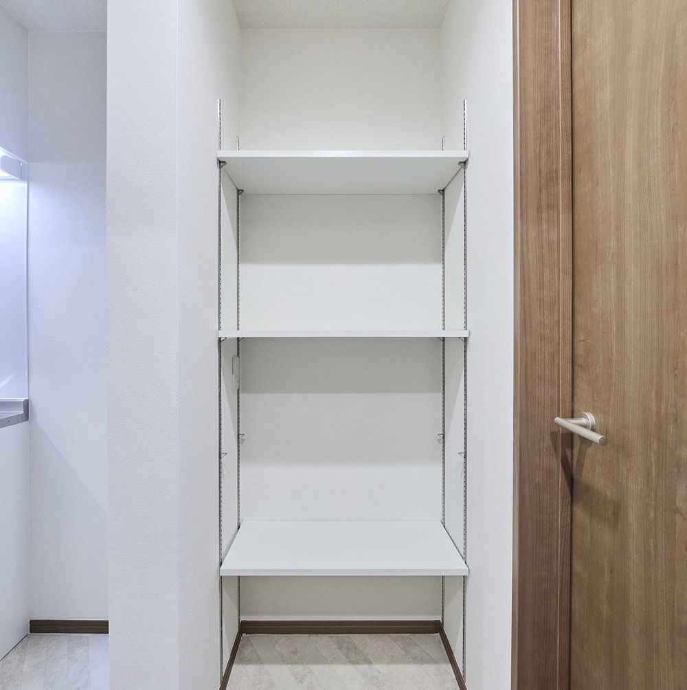 可動棚は、収納する物に合わせて高さを調整できてとっても便利ですね💡