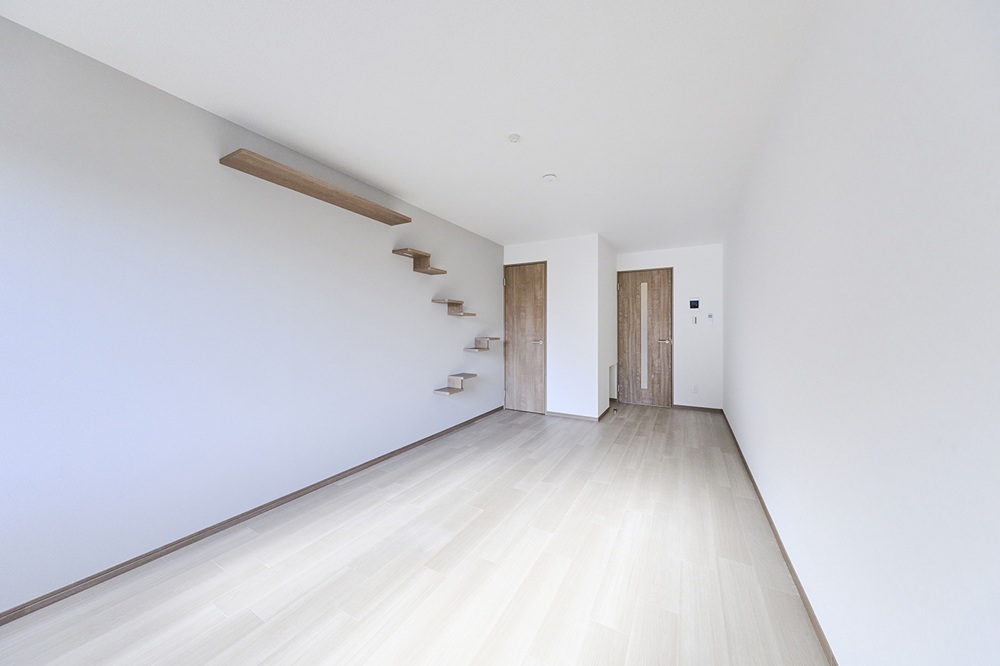 壁面にはキャットウォークを設け、室内でも猫がのびのびと過ごせる空間となっています🐈