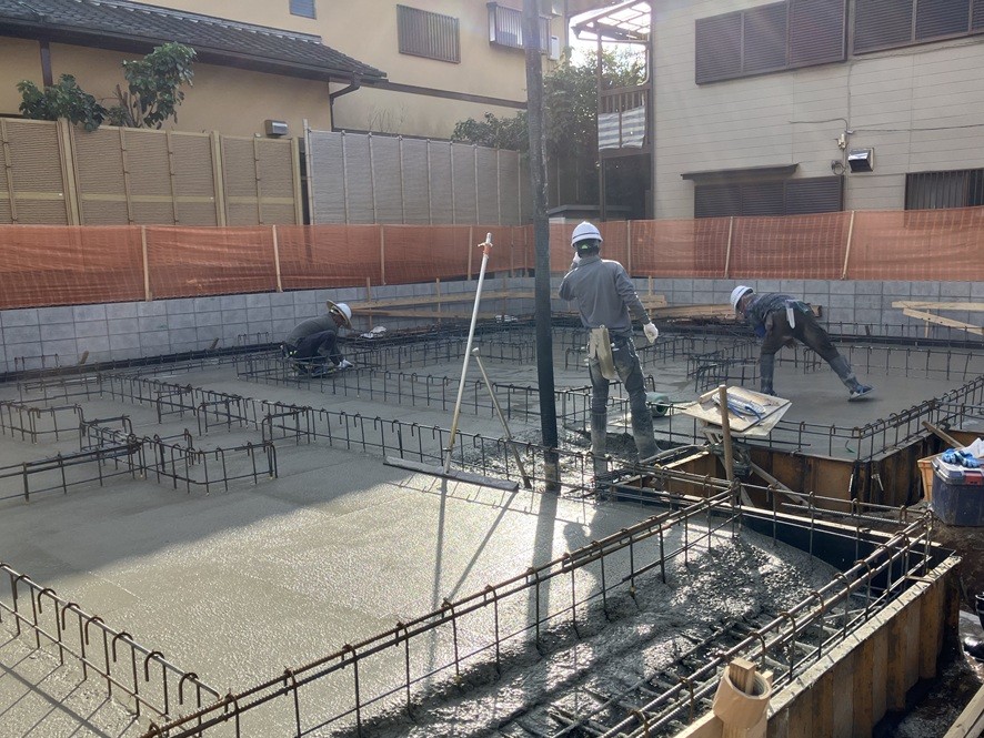 配筋工事が完了し、ベースコンクリートの打設を行いました!