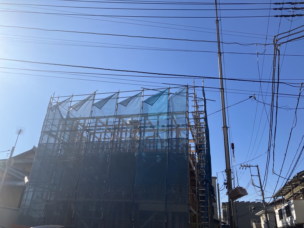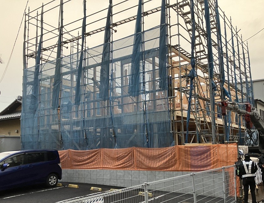 そして、3階部分までの建て方が完了し、建物の全体像が現れました!
