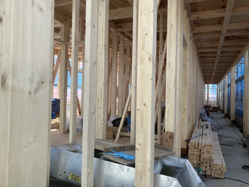上棟後の木工事が順調に進んでいるのがよくわかりますね💡