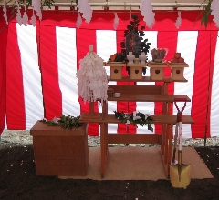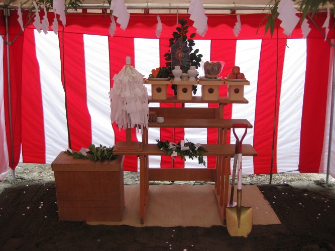 梅雨で解体工事に多少影響がありましたが、地鎮祭当日は天候にも恵まれ、無事執り行われました。