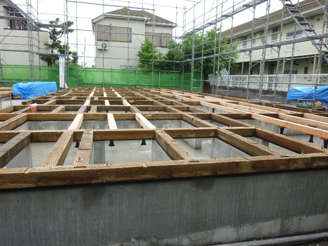桜の散る季節に着工し、基礎まで順調に工事が進んでいます。これから木工事に入ります。