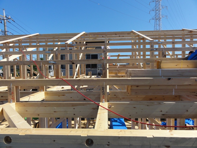 基礎から土台、軸組み、建て方、そして上棟まで順調に進んでいます。