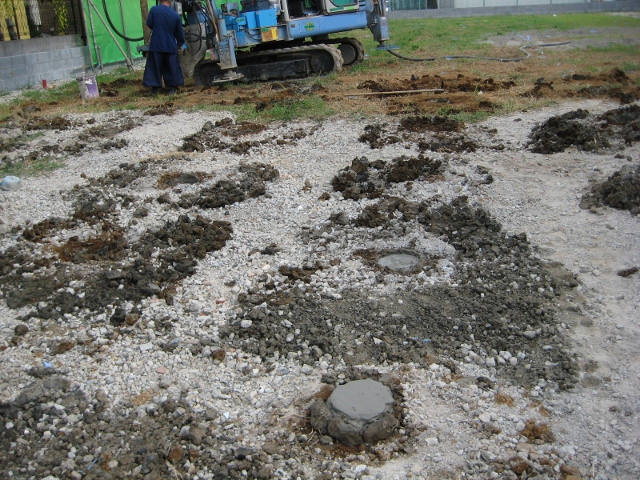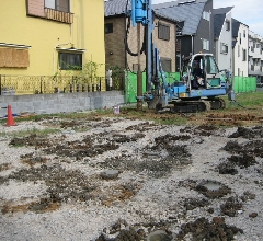 直径20cm、深さ6.25Mの杭210本を約1週間で施工します。