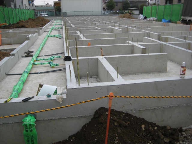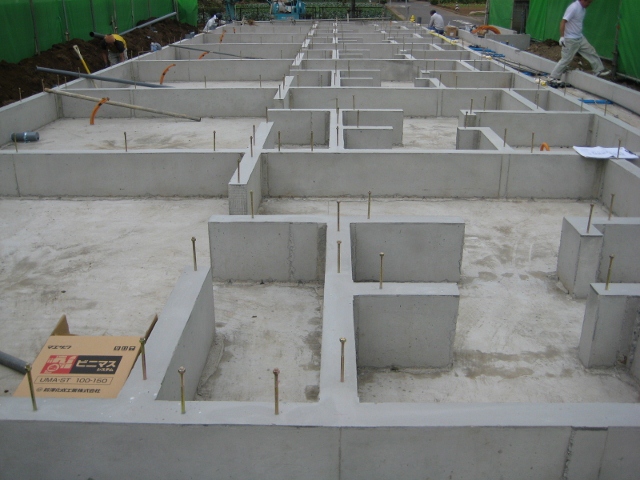 基礎の立上り部分のコンクリートを打って型枠をはずして基礎の完成です。