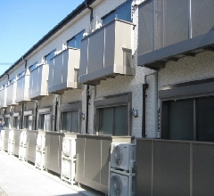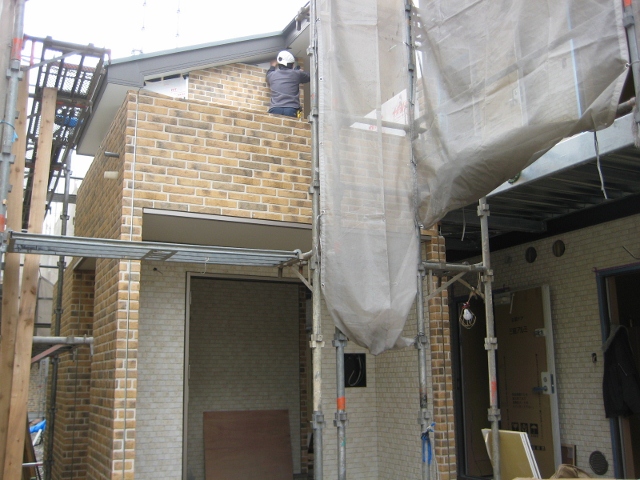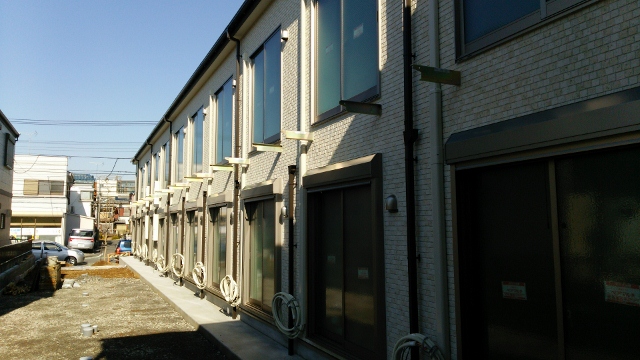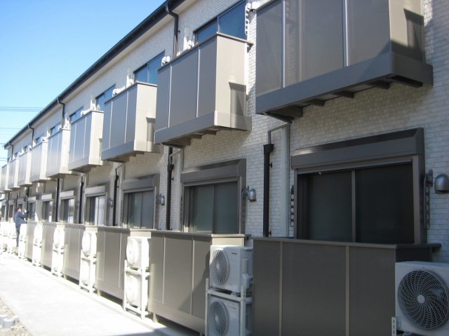 ベランダやエアコンの室外機が設置されて、外観の雰囲気が変わってきました。