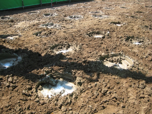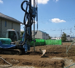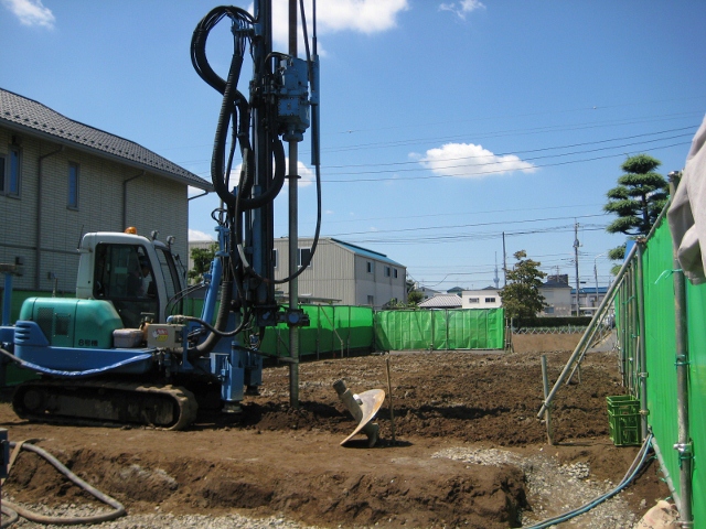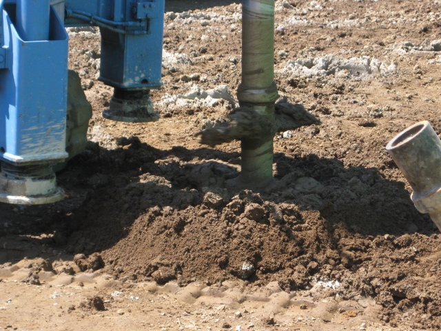 今回は柱状改良工法・直径60cm、深さ2.25M、98本を2日間で施工しました。