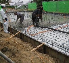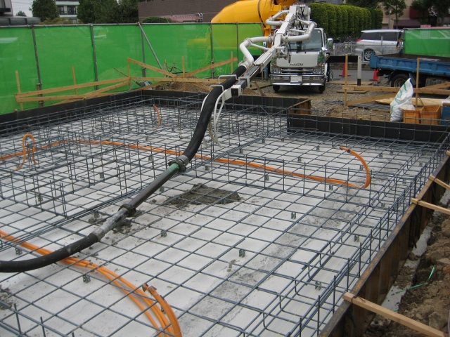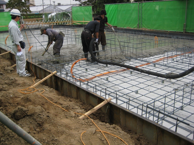 基礎のコンクリート打設作業です。