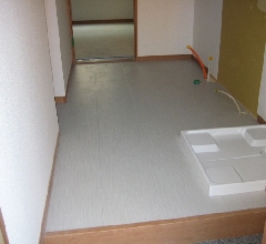 下駄箱(姿見付き)、洗濯機用防水パン、独立洗面台