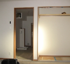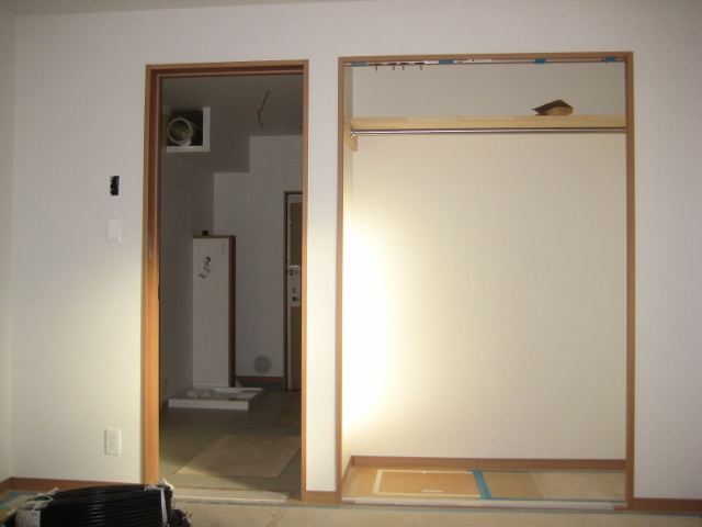 室内は、クロス張りが終えて水周りなどの設備設置が始まるところです。