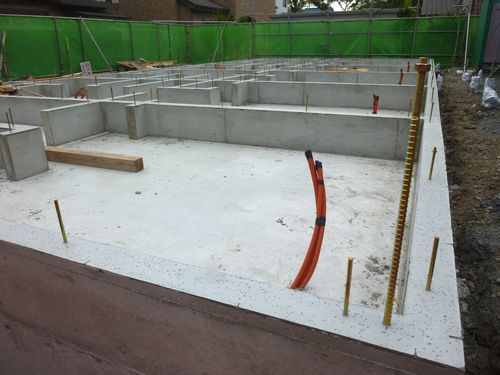 基礎工事を行なっています。 こちら2枚の写真は べた基礎~基礎の立ち上がりです。 完成が待ち遠しいですね!