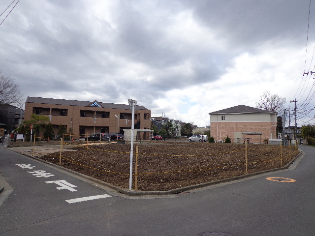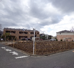 これから、この敷地(更地部分)で、アパート2棟と自宅建物1棟の新築工事が始まります。