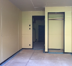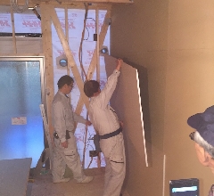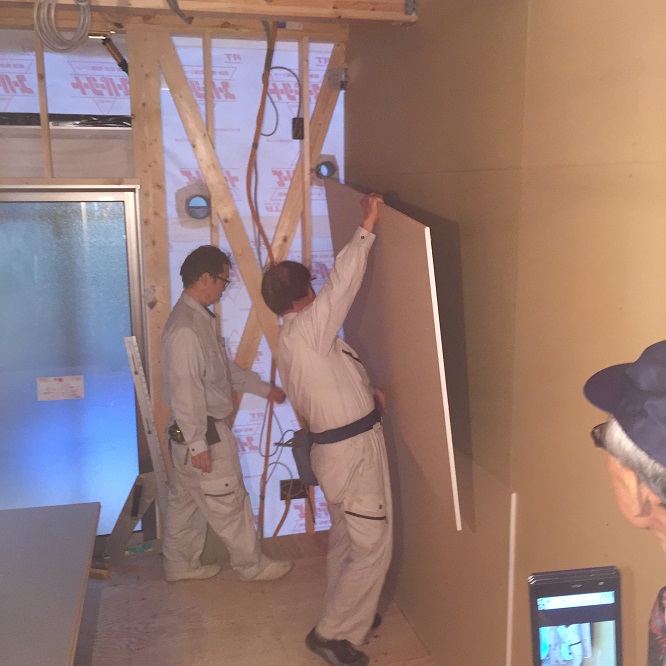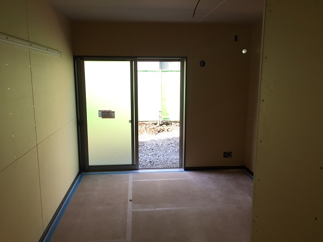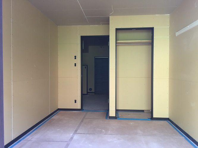 隣接する部屋との間の壁は、厚さ12.5ミリの石膏ボード2枚張りです。