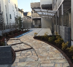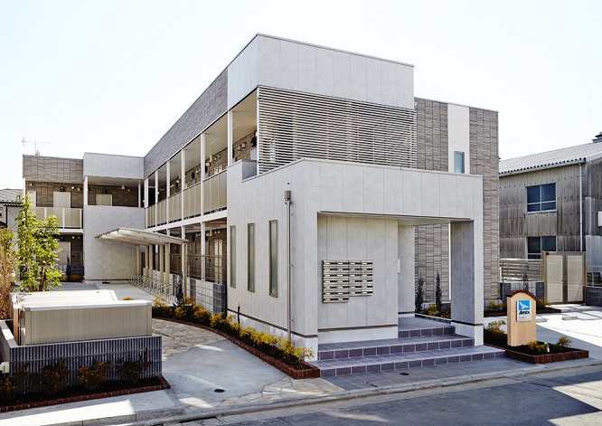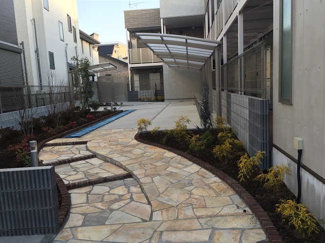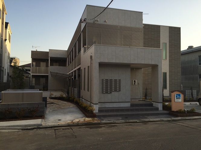 オートロックエントランスや外部土間の石張りなど、堂々とした建物にふさわしい外観に仕上がりました。