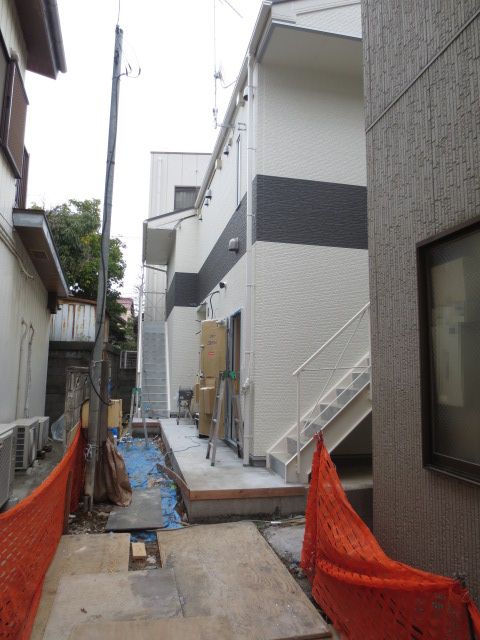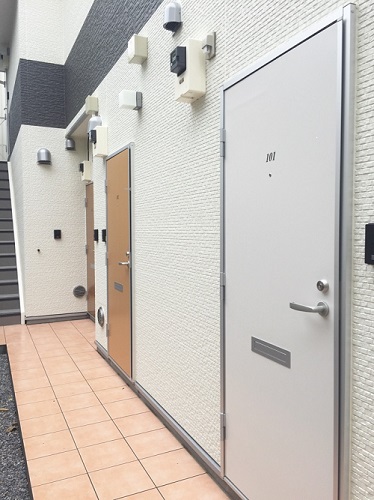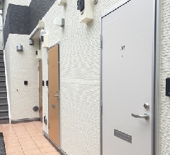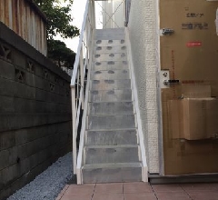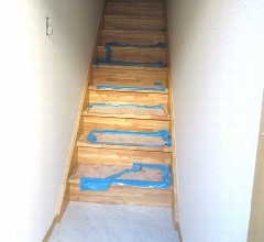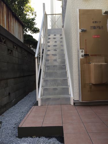 今回のアパートは長屋の為、写真では分かりにくいのですが2階の廊下がありません。その為、2階の部屋には各部屋に通じる階段が設置されます。