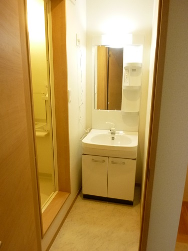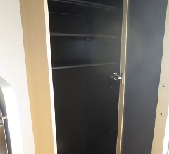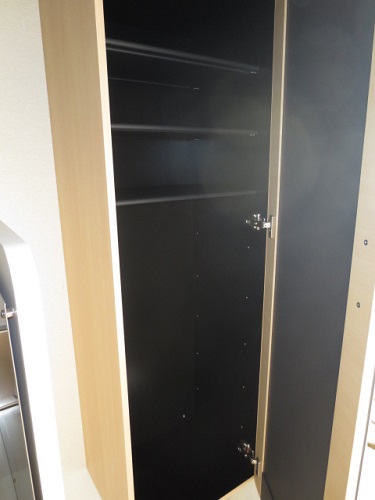 玄関を入るとまず初めにシューズボックスが目にはいります。こちらは扉を開けた状態で写真を撮りましたが、扉を閉めると鏡が設置されています!外出時のみだしなみを玄関で確認することができるのは便利ですよね。
