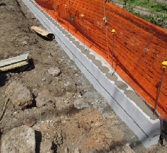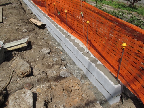 コンクリートのブロックを積み上げ、