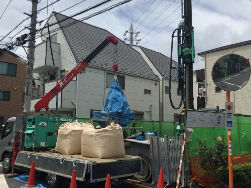 本日は地盤改良を行っております。