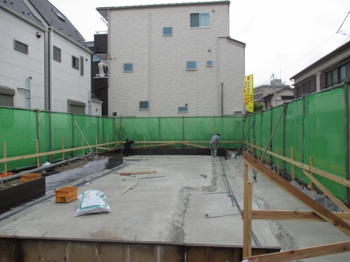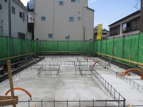 ベタ基礎の打設工事が行われています。