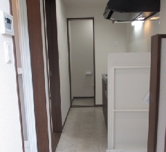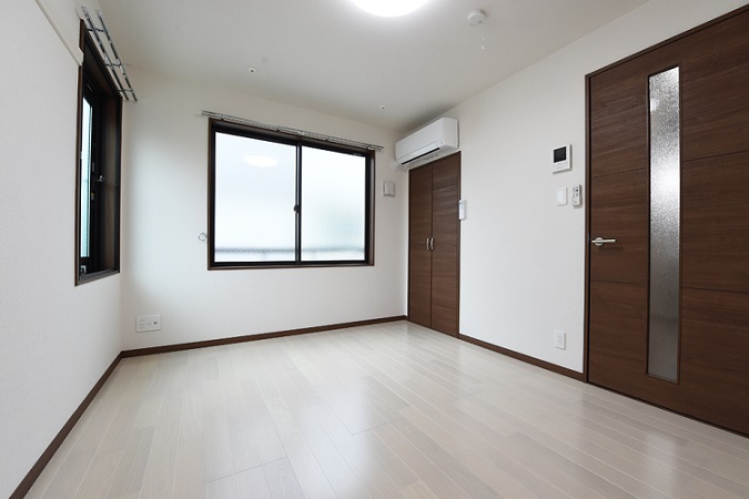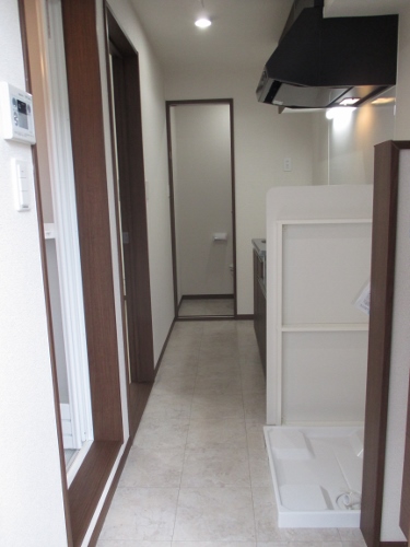 玄関ドア、内装が設置され、