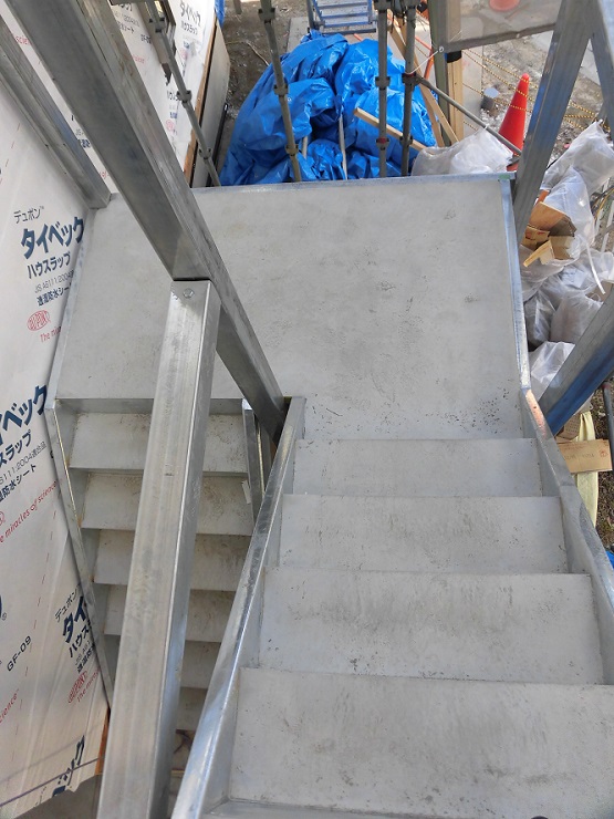 順調に作業が進み鉄骨階段と共用部の廊下の工事が始まりました。