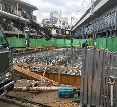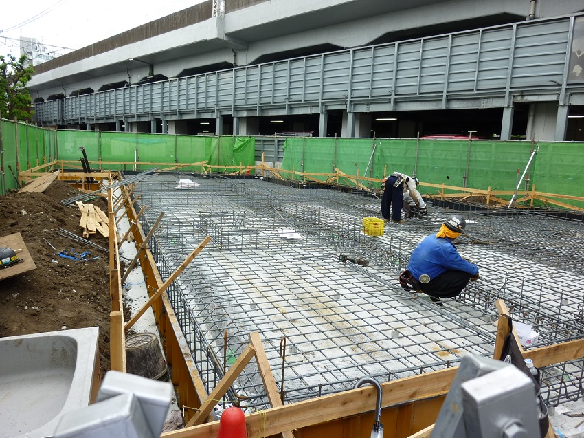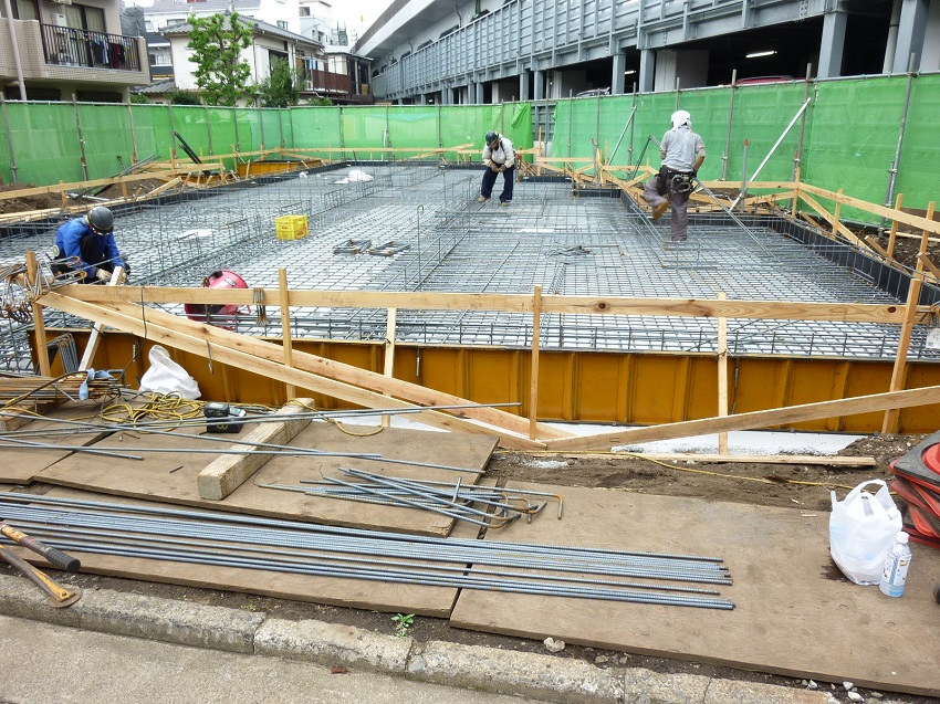 吉祥寺の工事現場は基礎工事が行われております。具体的には「鉄筋組み」と「外周枠組み」の作業になります。