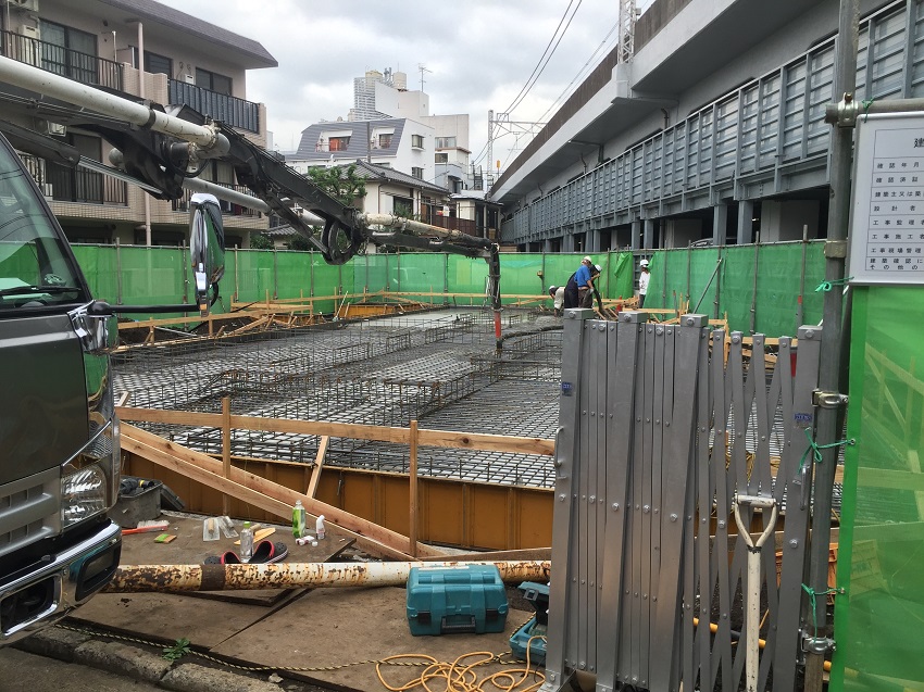 今回の吉祥寺の工事現場はミキサー車でコンクリートを流し込んでいる様子になります
