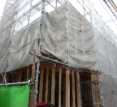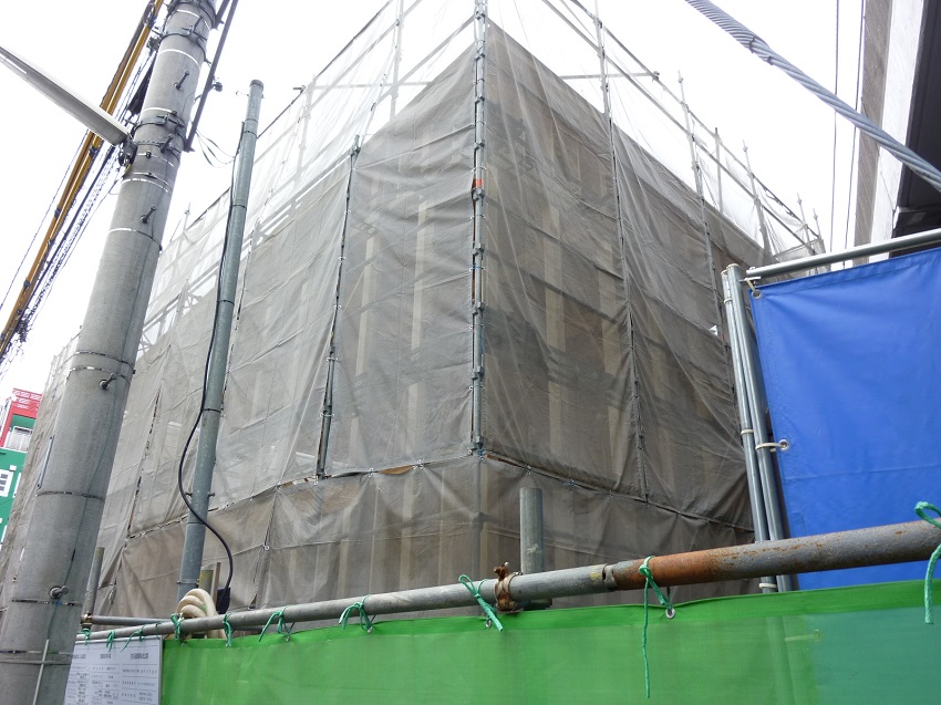 上棟もおわり、すっかりシートに覆われた吉祥寺保育園の写真になります