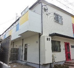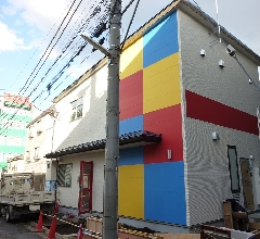 暖かみのある白がベースになっており、ところどころにカラフルなさし色を使用することでオシャレな外壁となっております。