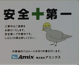 アミックスのロゴマークである「鳩」が、ヘルメットを着用し皆さまにご挨拶。