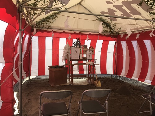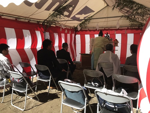 台風により天候が心配されましたが、当日は晴れて地鎮祭日和となりました!