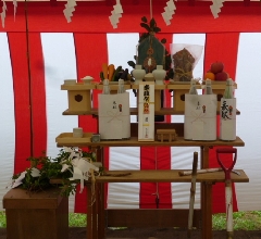 地鎮祭とは、基礎工事に入る前に土地の神を祭り、工事の安全を願う祭事になります。