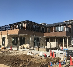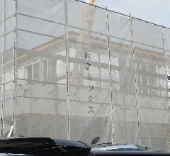 骨組みが終わると外部工事とお伝えしたのですが、外壁の工事中は、建物の周りにシートをかけてしまうので、中々いい写真が撮れなのですその代わり、外壁が完成してシートが取れると、一気に完成形に近づきます