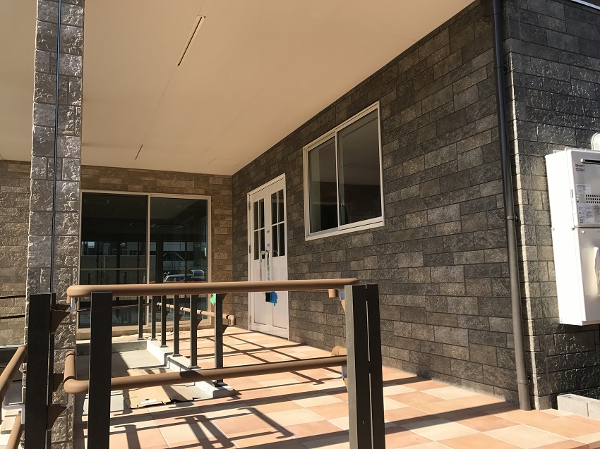 2枚目の写真は入口部分の写真になります。外には足や手を洗える場所も作っています