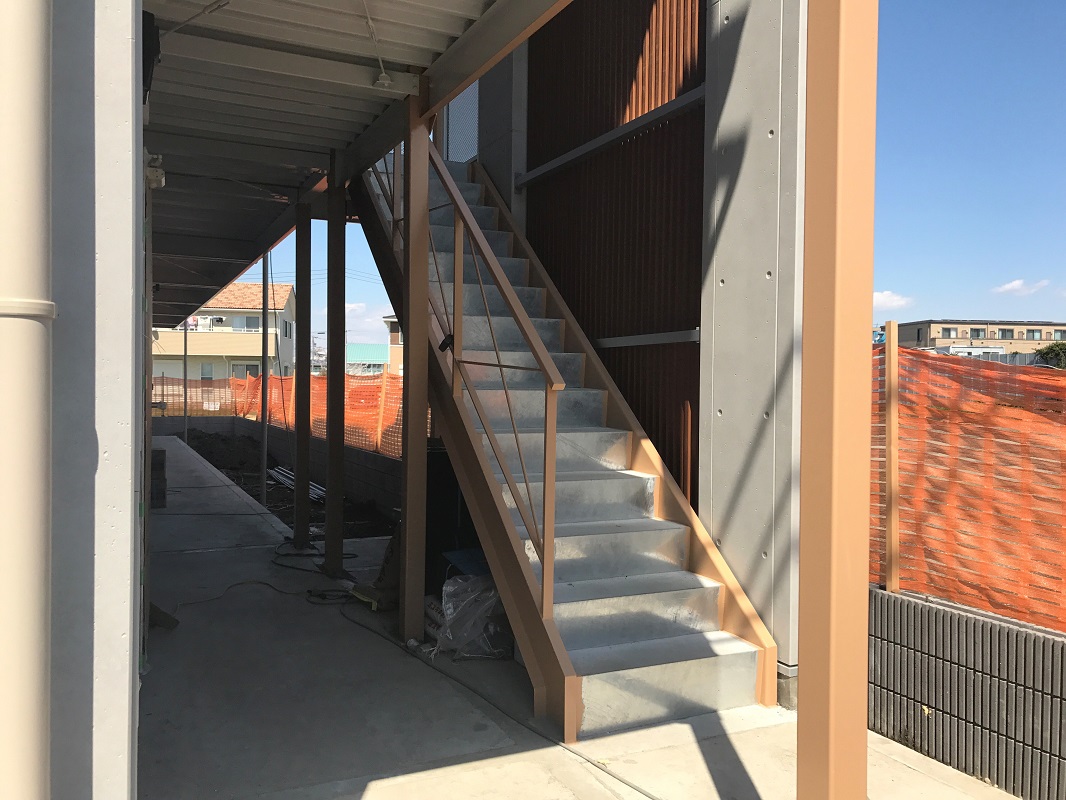 まず1枚目は物件の2階に上がる階段になります階段も物件と同じような色に塗装されていますね