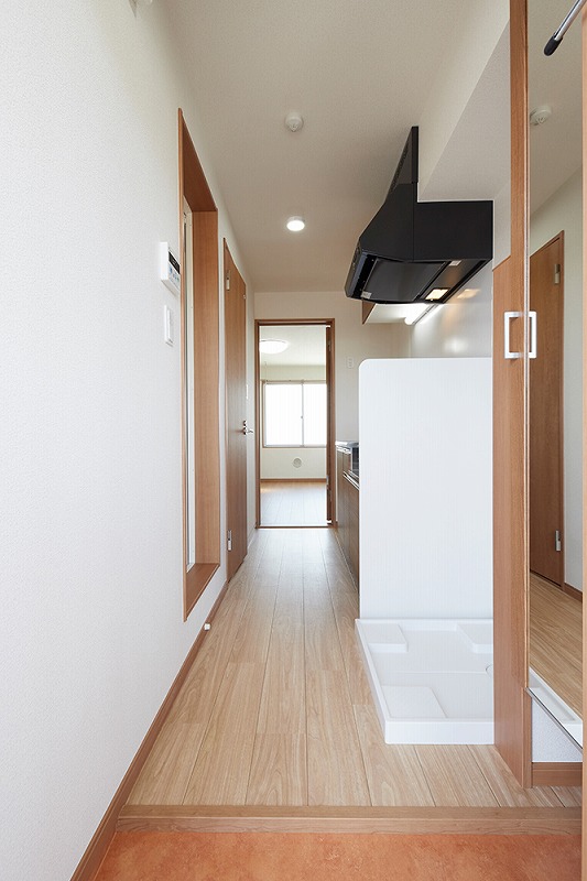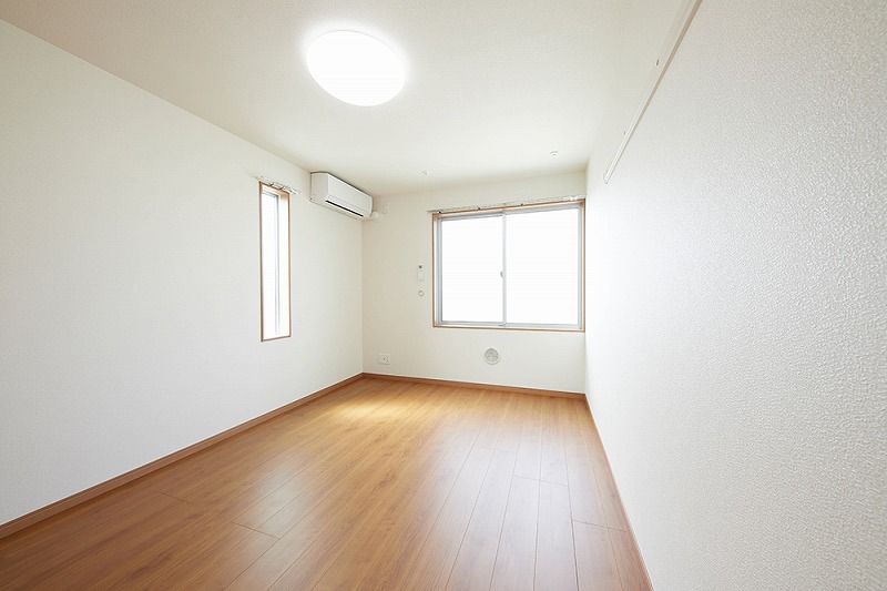 壁紙はホワイト、床は木目調のオシャレな雰囲気のお部屋になっていますこの色合いだと、どんな色の家具でも合いますね!小窓もついているので、光もはいってきます。太陽光には、気分をリフレッシュしたり、気持ちを落ち着かせる効果があるといいます少しでも入居者の方に気持ちよく住んでいただけたら嬉しいです