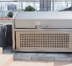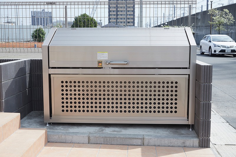 2枚目はゴミストッカーの写真です蓋つきのゴミストッカーを設置することで、臭いの広がりを防ぎ、見た目もキレイになります