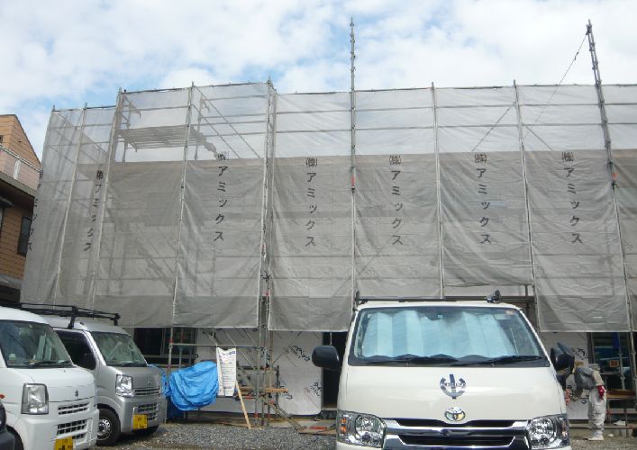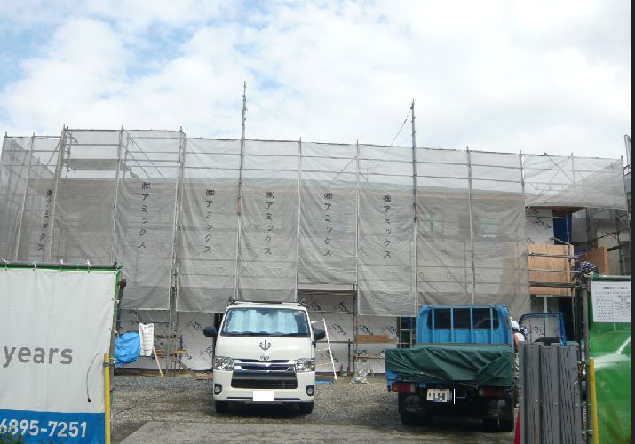 上棟も終わり、メッシュシートが貼られ、1ヵ月前に比べてより一層現実的になって来ましたね。