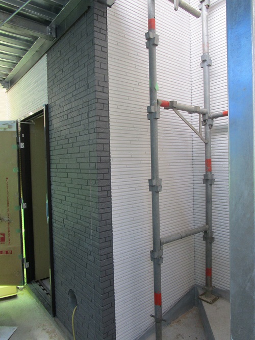 現場は現在外壁が貼られ、室内の間仕切り等を進めているところです。