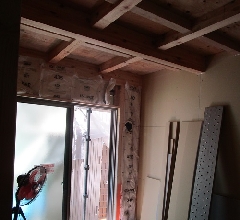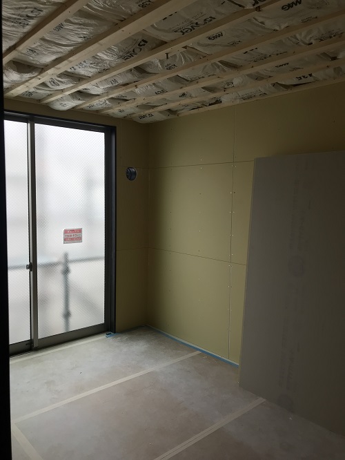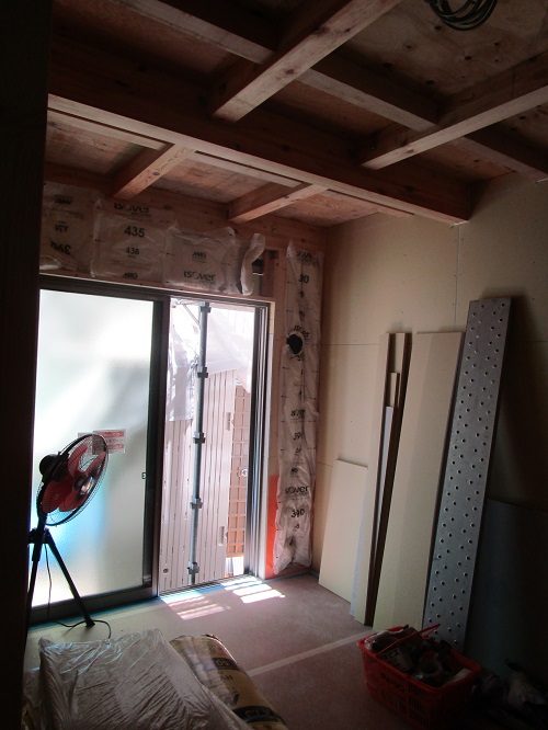お部屋の中からは天井の断熱材が敷き詰められているところを見ることができました。