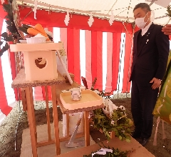 地鎮祭には社員もマスクを着けて参加しました