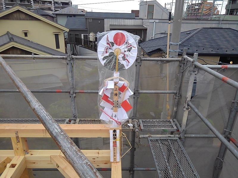 3枚目の写真は「棟札」と呼ばれるもので、上棟した際に建物の一番高い場所に飾ります