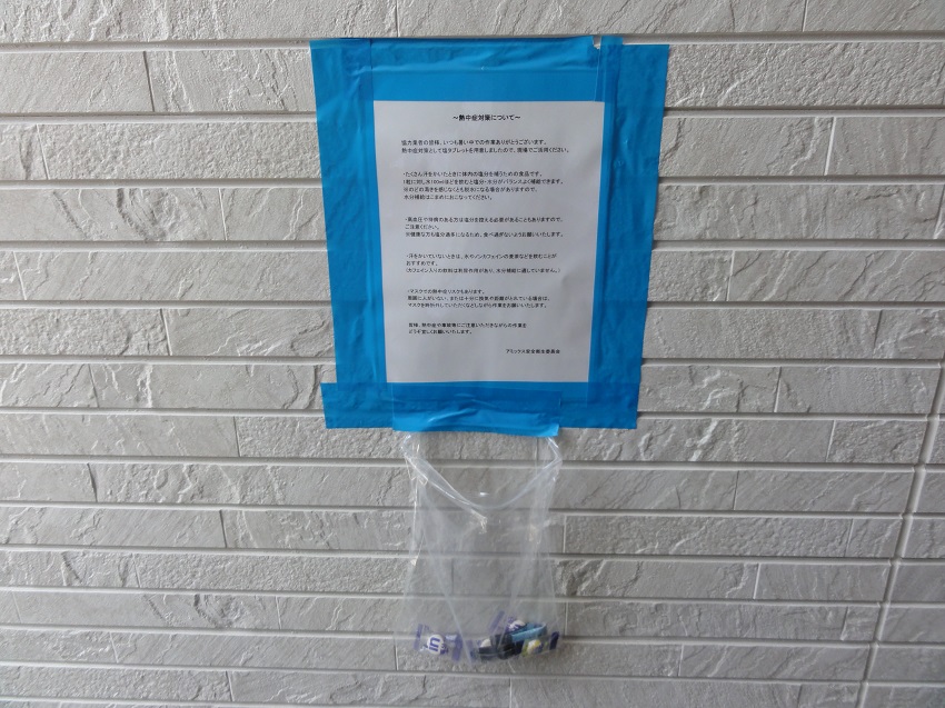 現場には熱中症対策で塩飴やタブレットが差し入れされていました!!