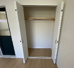 こちらのお部屋にも室内物干しを設置しています。